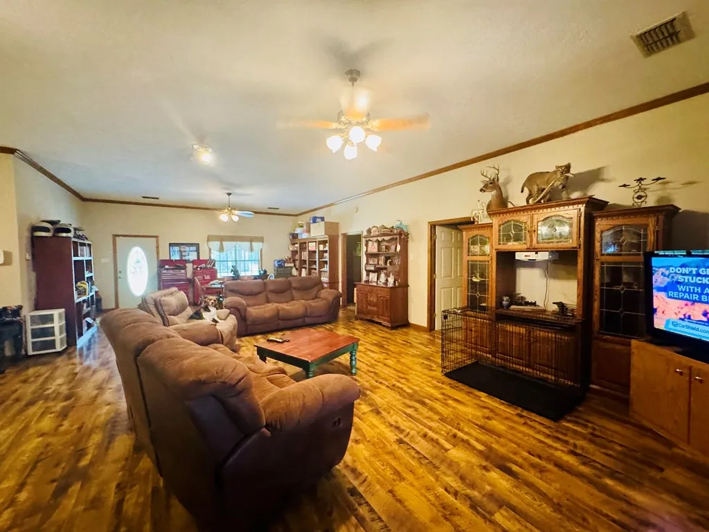 Enjoy your own slice of country living with this versatile 9.12 acre property made up of four separate parcels! This unique ranch style setup is ideal for homesteading or investment and features two singlewide homes, one currently renting for $520 per month and the other ready for renovation. The main home offers a spacious open concept floor plan with 10 foot ceilings, three bedrooms, two bathrooms, and a cozy sunroom addition! All interior and exterior doors are 36 inches wide, making the home wheelchair accessible. Additional features include four septic tanks, four electrical meters, three deep wells and two shallow wells, multiple barns, sheds, and livestock shelters. The property also has a termite bond in place, along with an HVAC system and water heater that are less than two years old. With plenty of room for animals, expansion, or additional rental opportunities, this property is perfect for those seeking income potential or a peaceful farm lifestyle. Call today!!