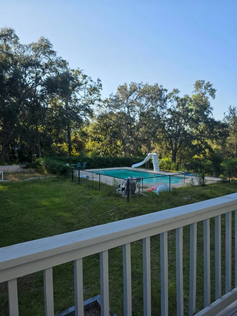 Beautiful Home with Guest House, Screened Porch & Saltwater Pool! This spacious and well-maintained home offers 3 bedrooms with walk-in closets, 2 full baths, and a half bath for guests. You’ll love the open layout featuring a large Family Room with custom built-in cabinetry, a cozy Den for gatherings, and a Formal Living Room with a welcoming Foyer and guest coat closets. The Kitchen and Breakfast Nook showcase beautiful hardwood flooring and flow into the Formal Dining Room, which opens to a screened porch—a perfect space for entertaining or relaxing. Outside, enjoy your fenced saltwater pool with open patio space, ideal for grilling and outdoor living. A unique bonus is the detached two-story building. The upper level includes a kitchenette, half bath, and laminate flooring, making it ideal as a home office, guest suite, or rental unit. The lower level features a cement floor and built-in shelving, perfect for storage or workshop space. Call today to schedule a private showing!