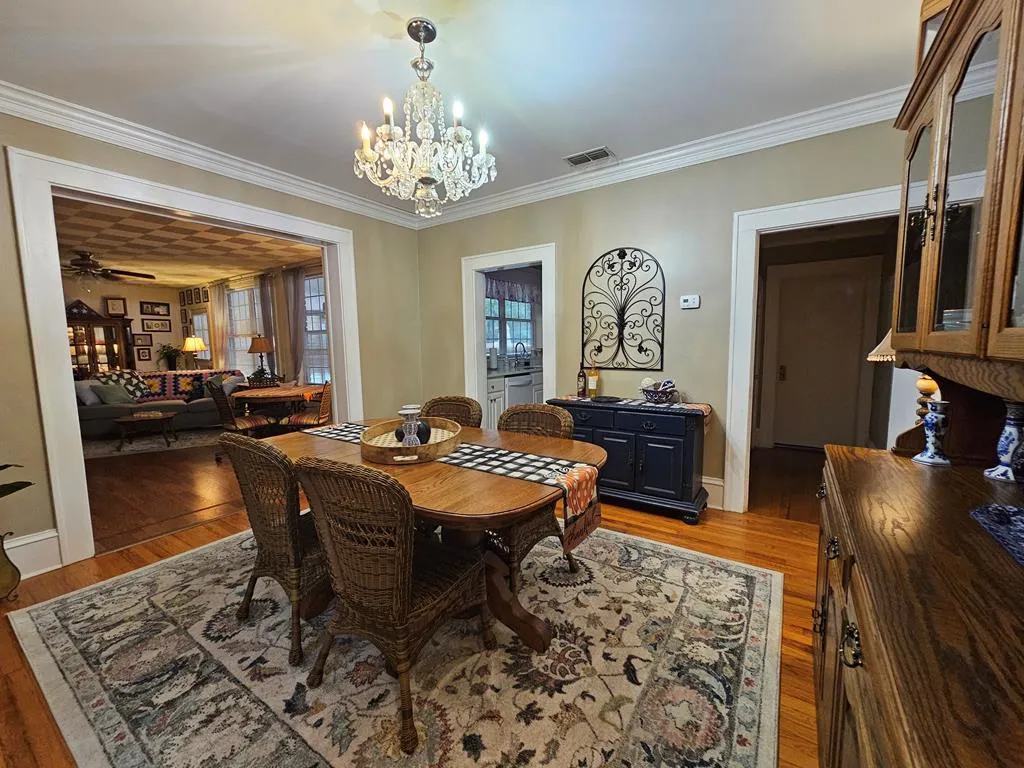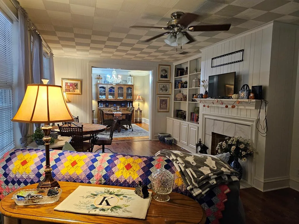 Spacious 4BR/4BA brick home in sought-after Cherokee Heights offering nearly 4,900 sq. ft. of timeless charm! Enjoy hardwood floors, arched doorways, and crown molding throughout. The remodeled kitchen features quartz countertops, double ovens, cooktop, tiled backsplash, and a huge walk-in pantry. Multiple living areas include formal living and dining rooms, family room, 3 fireplaces and den/library. Two primary suites each offer luxurious en suite baths and walk-in closets. Outdoor living includes a covered patio, additional brick patio, and partially fenced yard. The 2-car garage connects to a workshop with stairs to a finished bonus room/FROG with four walk-in storage areas—billiards table conveys! Recent upgrades include new insulation, gutter guards, newer heat pump, two cooling units, and tankless water heaters. Conveniently located near schools, shopping, and entertainment. This home truly has it all!